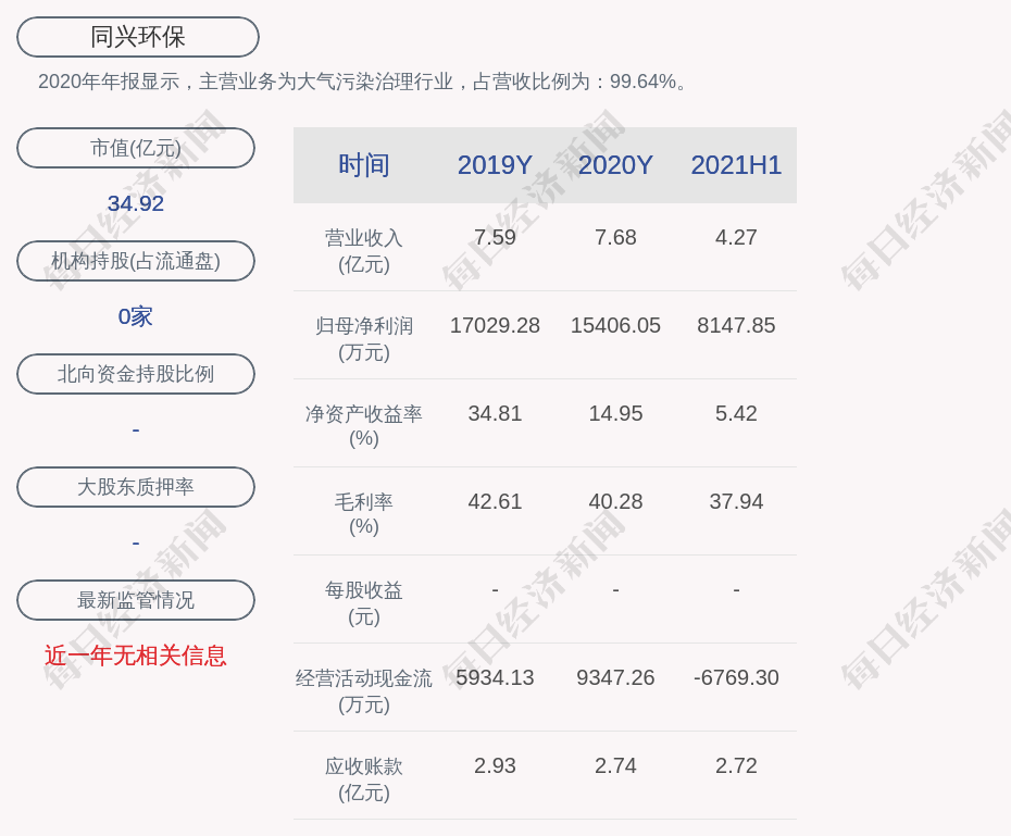 2020年年報顯示,同興環(huán)保的主營業(yè)務(wù)為大氣污染治理行業(yè),占營收比例為:99.64%。