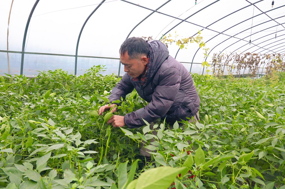 然而創(chuàng)業(yè)之路并非一帆風(fēng)順,剛上手,黃文茂就遇到了難題:水澆多了爛根,肥施少了不結(jié)果,病蟲害更是讓他束手無(wú)策。這時(shí),同在基地的趙師傅主動(dòng)上門,從控溫到防病,手把手教他。原來(lái),趙師傅是廣元市農(nóng)業(yè)農(nóng)村局培訓(xùn)的新型職業(yè)農(nóng)民,這樣的技術(shù)能手,全市已培育超萬(wàn)人次。不僅如此,市、區(qū)農(nóng)業(yè)農(nóng)村局的專家還常來(lái)大棚“把脈”,現(xiàn)場(chǎng)指導(dǎo)科學(xué)管理,沒多久,黃文茂就摸清了種植門道,22個(gè)大棚種滿辣椒、茄子、豇豆等作物,綠油油的一片煞是喜人。