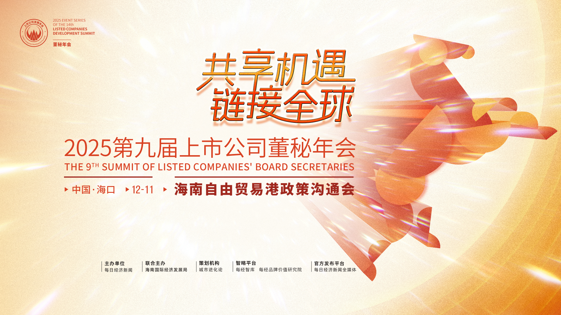 作為本次系列活動(dòng)的首場(chǎng)重要活動(dòng),“2025第九屆上市公司董秘年會(huì)暨海南自由貿(mào)易港政策溝通會(huì)”將于12月11日舉行。本次董秘年會(huì)以“共享機(jī)遇·鏈接全球”為主題,將吸引政府機(jī)構(gòu)、投資機(jī)構(gòu)、有意向出海的企業(yè)和眾多中國(guó)上市公司董秘及高管齊聚一堂,共話出海新機(jī)遇。
