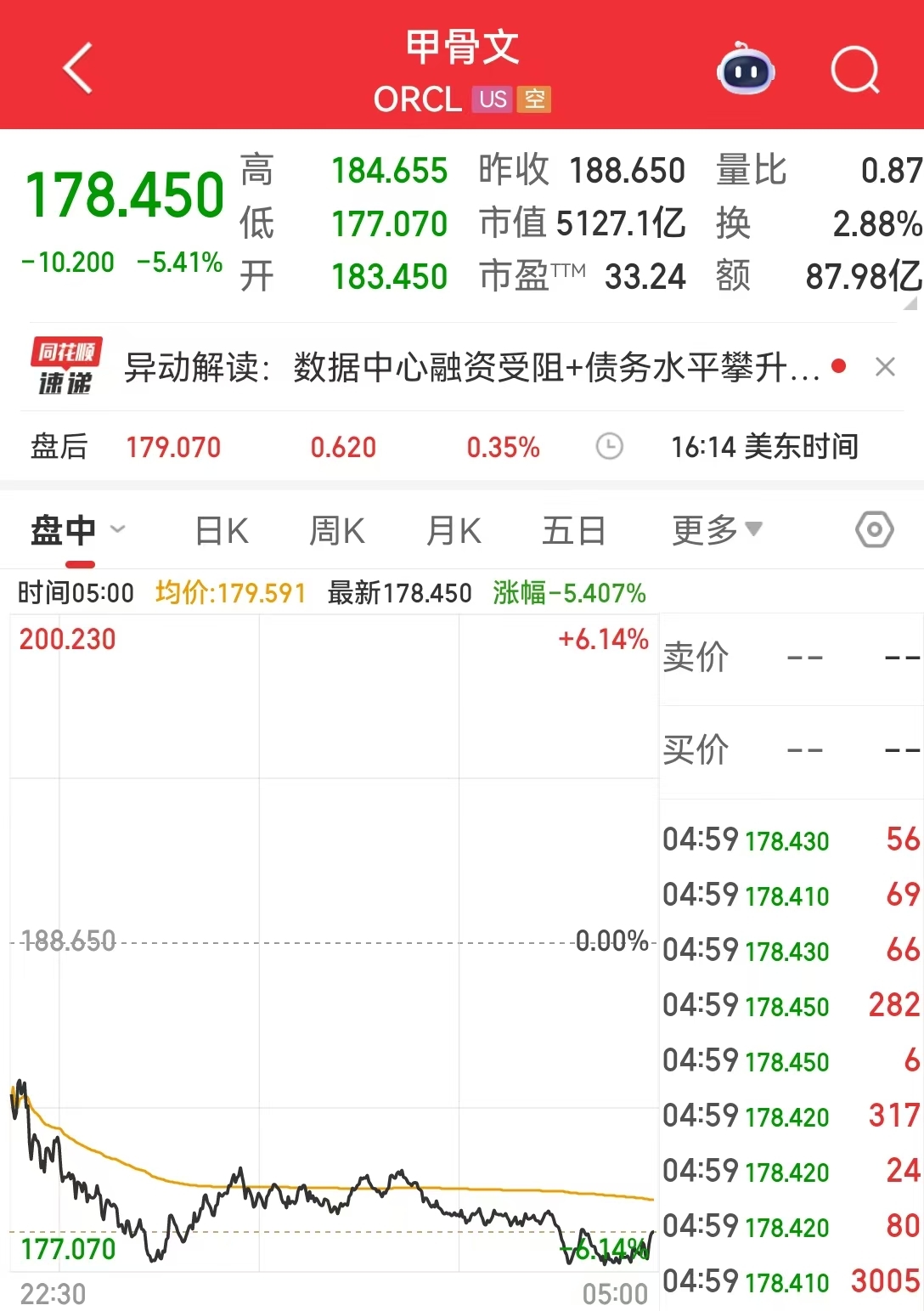 甲骨文跌超5%。甲骨文公司在該公司雄心勃勃的人工智能(AI)基礎(chǔ)設(shè)施擴(kuò)張計(jì)劃上遭遇重大挫折,其最大的數(shù)據(jù)中心合作伙伴Blue Owl Capital已決定不再支持一項(xiàng)價(jià)值100億美元的數(shù)據(jù)中心項(xiàng)目。不過,甲骨文隨后回應(yīng)稱,該項(xiàng)目的談判仍然按計(jì)劃進(jìn)行,整體推進(jìn)情況符合預(yù)期,且交易中不包括藍(lán)貓頭鷹資本。