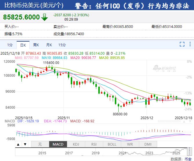 比特幣向下跌破86000美元,過去24小時(shí)內(nèi)下跌超2%。