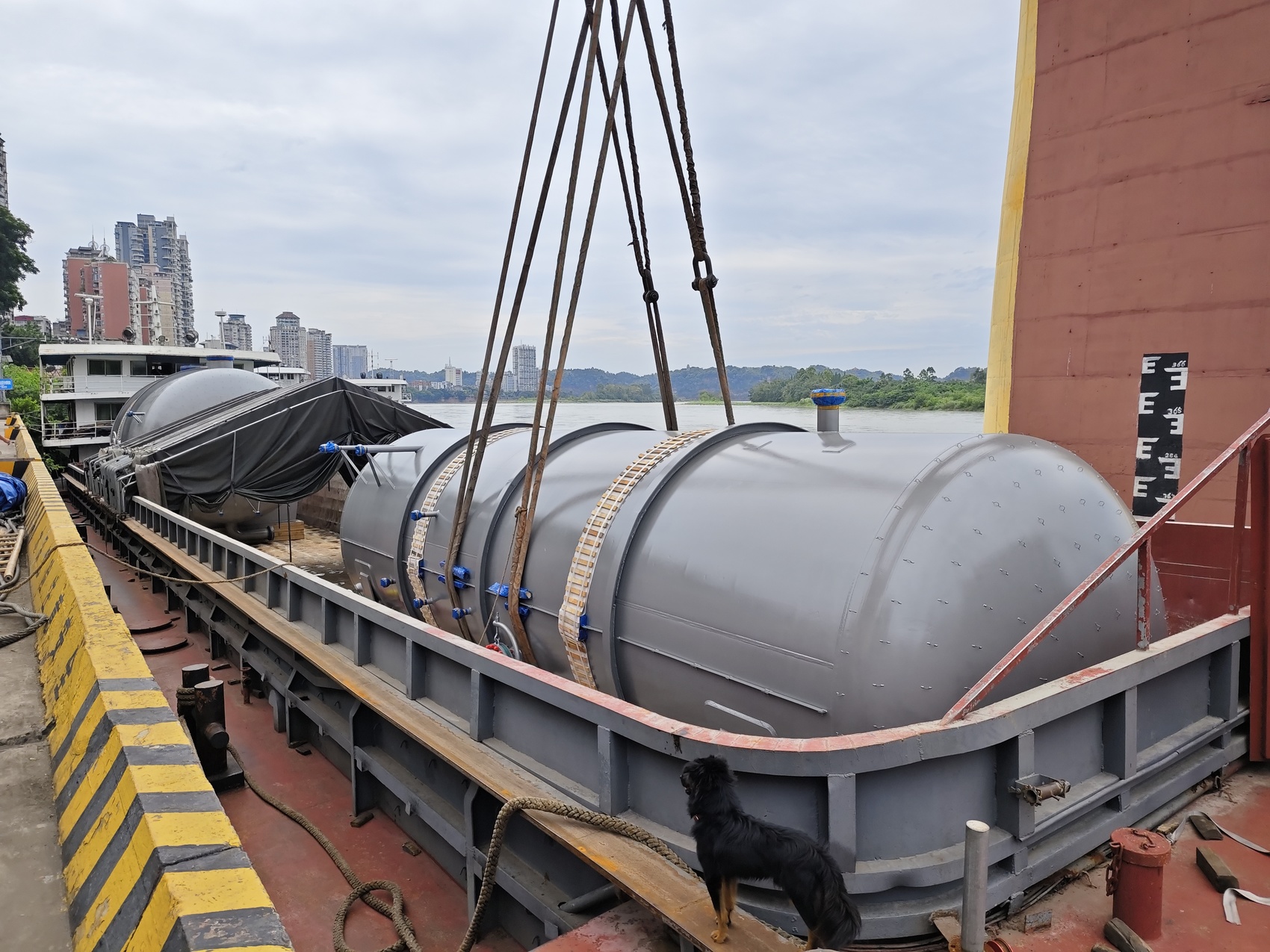 2025年7月運(yùn)往俄羅斯遠(yuǎn)東地區(qū)的天然氣加工設(shè)備,在樂(lè)山港大件碼頭裝船