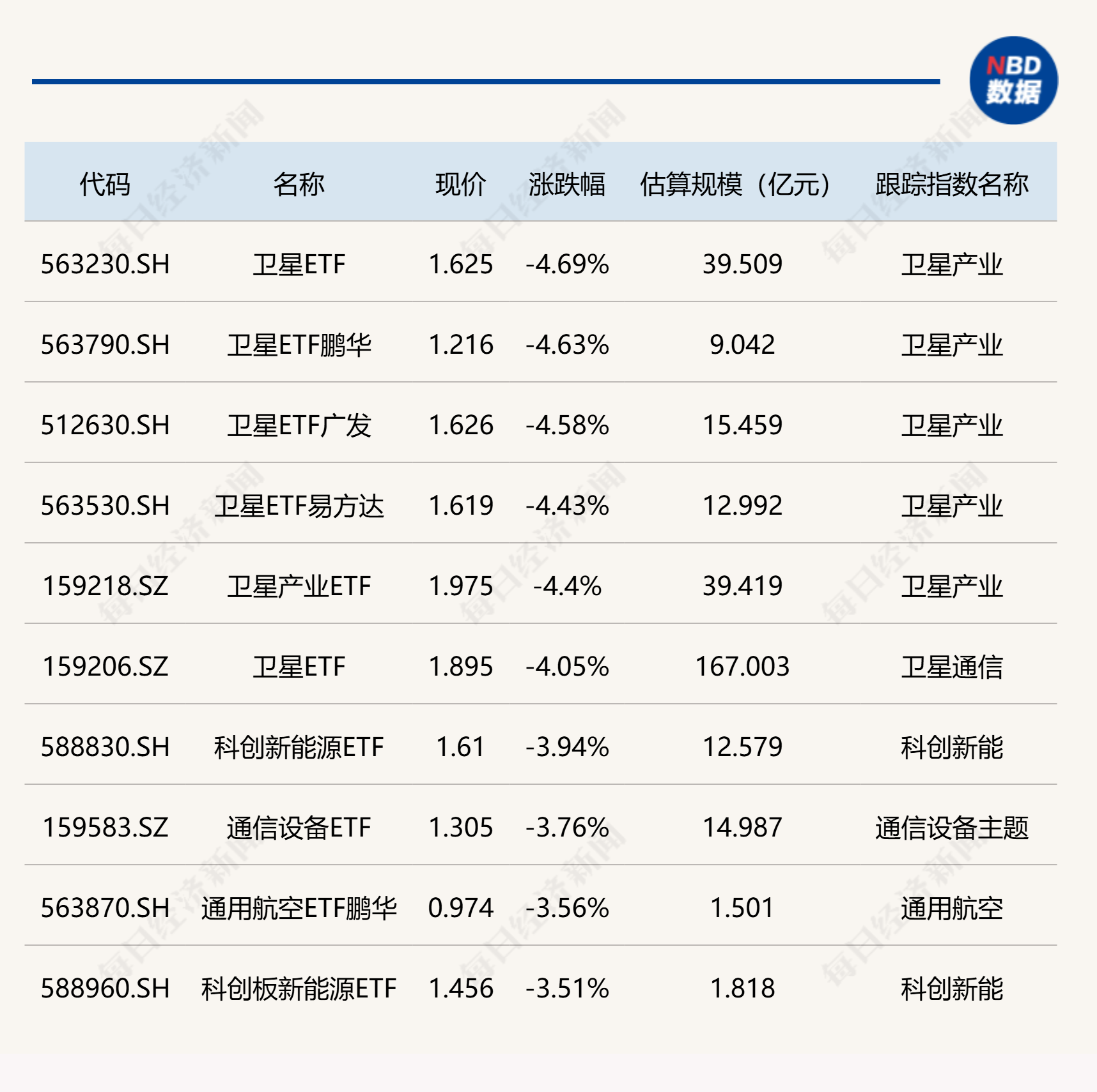 下跌方面,衛(wèi)星相關(guān)ETF跌超4%。