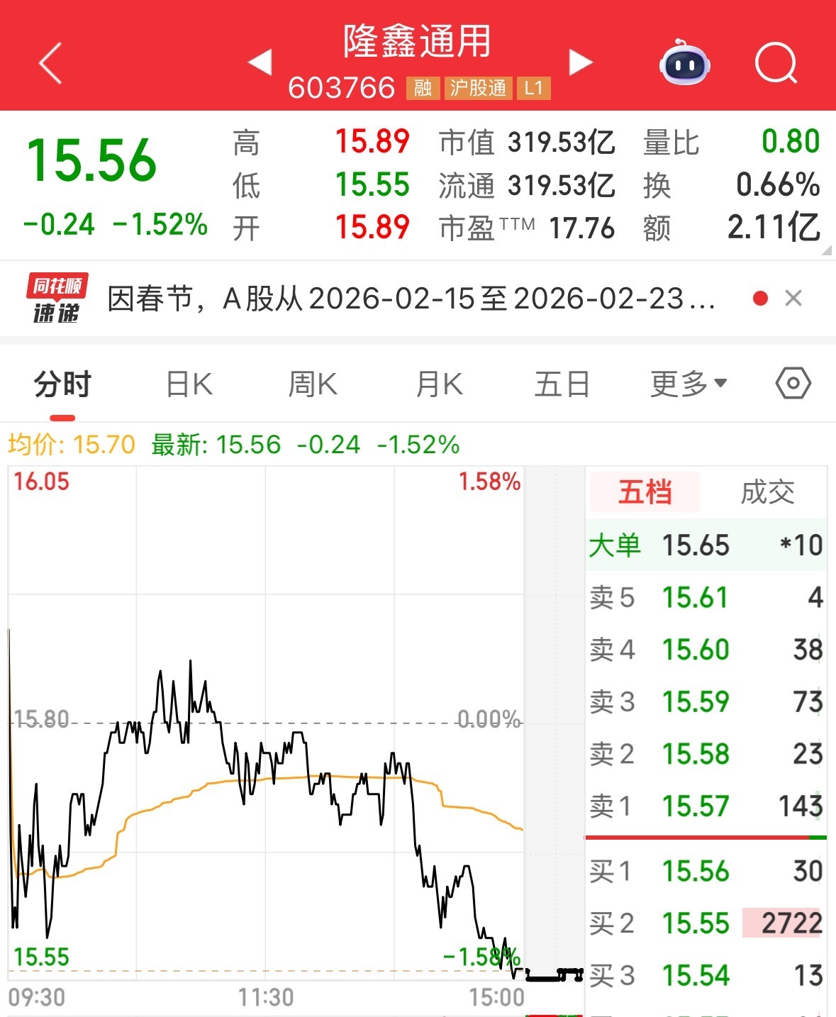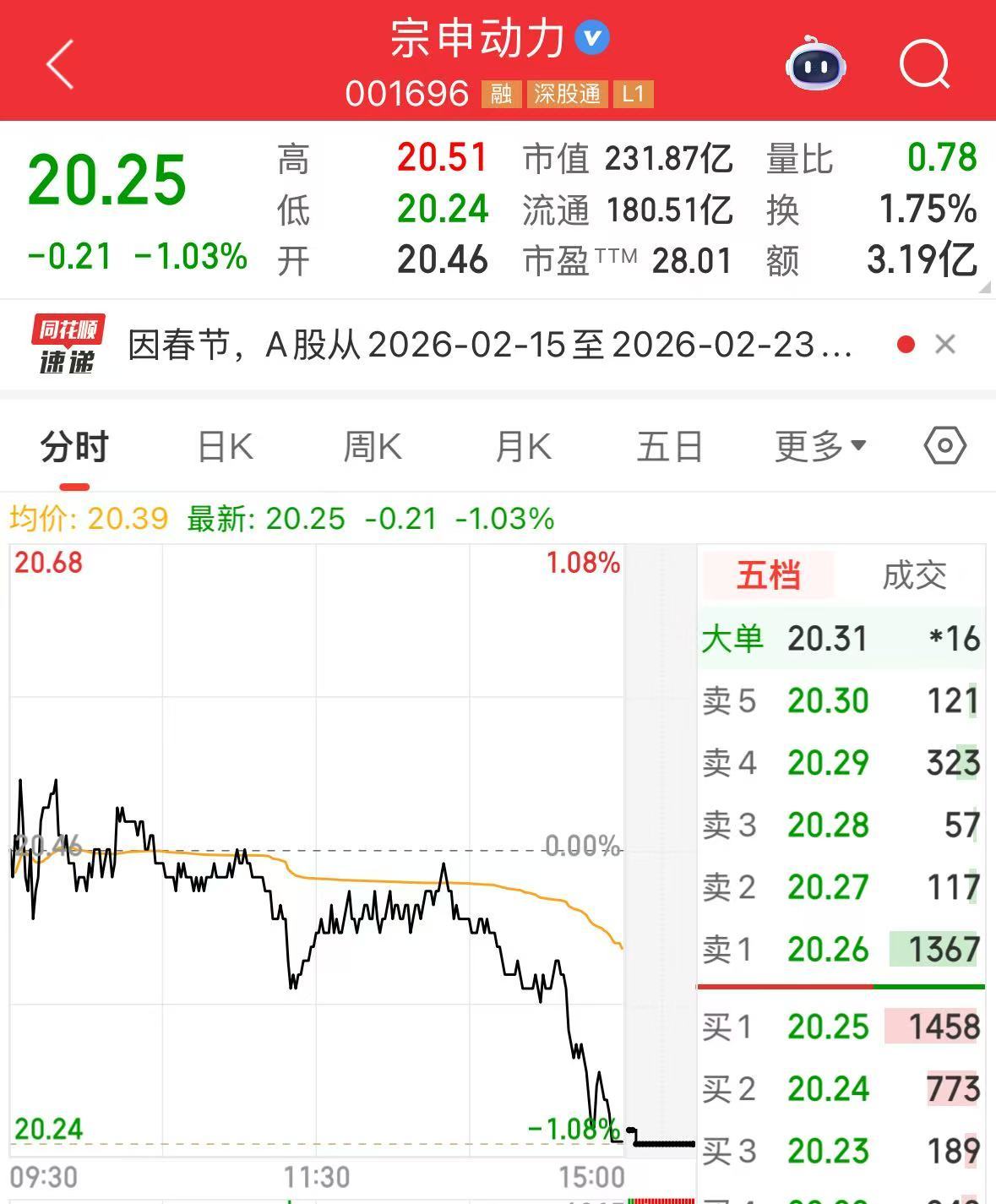 截至2月13日A股收盤,宗申動力股價下跌1.03%,隆鑫通用下跌1.52%。