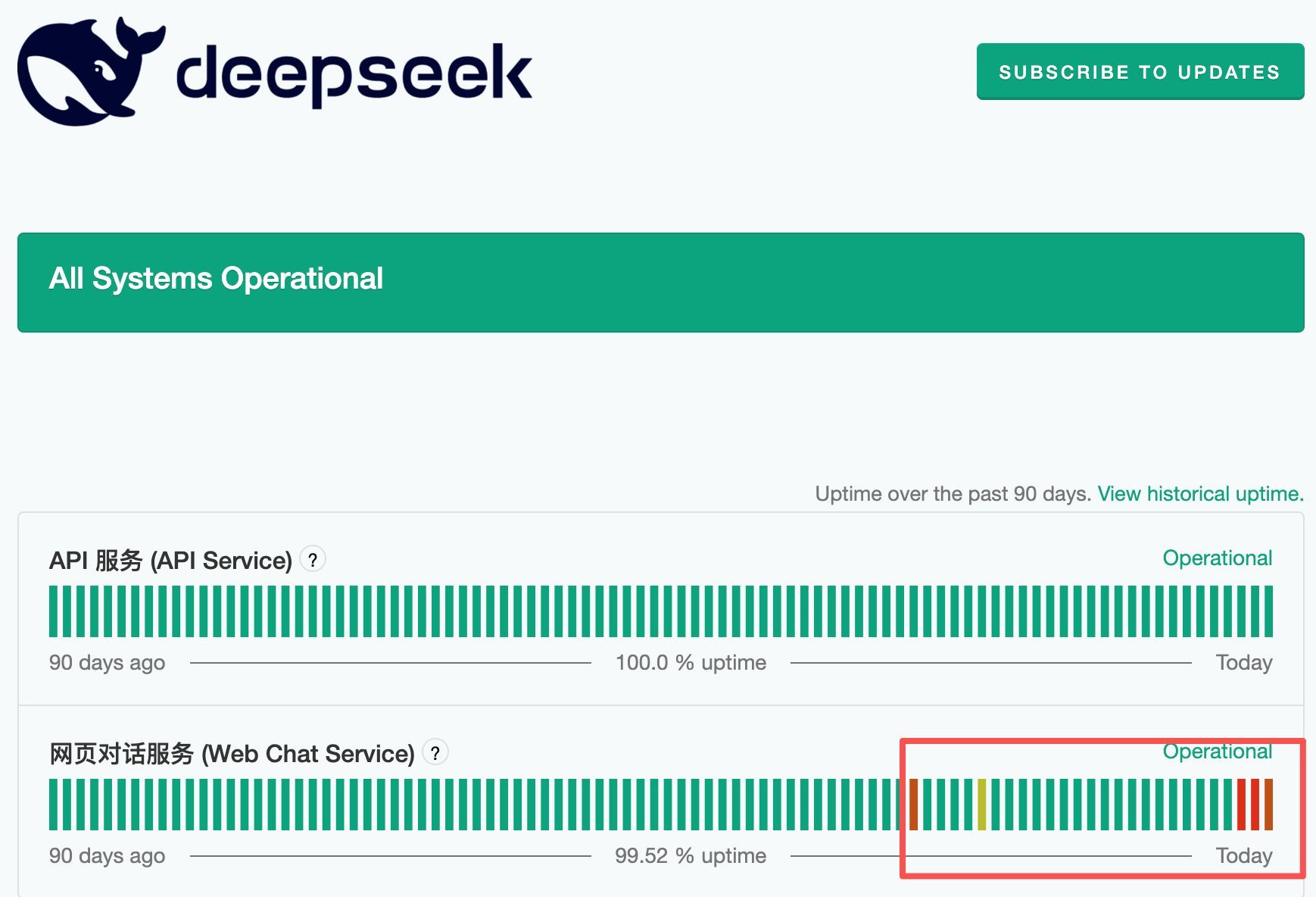 DeepSeek服務(wù)狀態(tài)頁面顯示3月29日故障情況