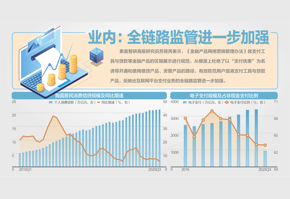 素喜智研高級(jí)研究員蘇筱芮對(duì)記者表示,《辦法》就支付工具與貸款等金融產(chǎn)品的區(qū)隔展示進(jìn)行規(guī)范,從根源上杜絕了以“支付優(yōu)惠”為名誘導(dǎo)開通和使用借貸產(chǎn)品、資管產(chǎn)品的路徑,有效防范用戶混淆支付工具與貸款產(chǎn)品,反映出互聯(lián)網(wǎng)平臺(tái)支付業(yè)務(wù)的全鏈路監(jiān)管進(jìn)一步加強(qiáng)。