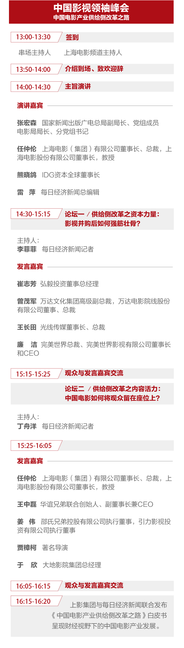 為了共同探討中國電影發(fā)展大計(jì),減緩國內(nèi)優(yōu)質(zhì)電影供給不足和人民對電影文化消費(fèi)需求持續(xù)增長的矛盾,張宏森、任仲倫、熊曉鴿、雷萍、王中磊、曾茂軍、王長田、廉潔、崔志芳、姜偉和賈樟柯等,方向掌舵者、龍頭企業(yè)和公司、行業(yè)精英……將濟(jì)濟(jì)一堂,傳遞政策導(dǎo)向、引領(lǐng)投資風(fēng)向、把脈創(chuàng)作方向……
