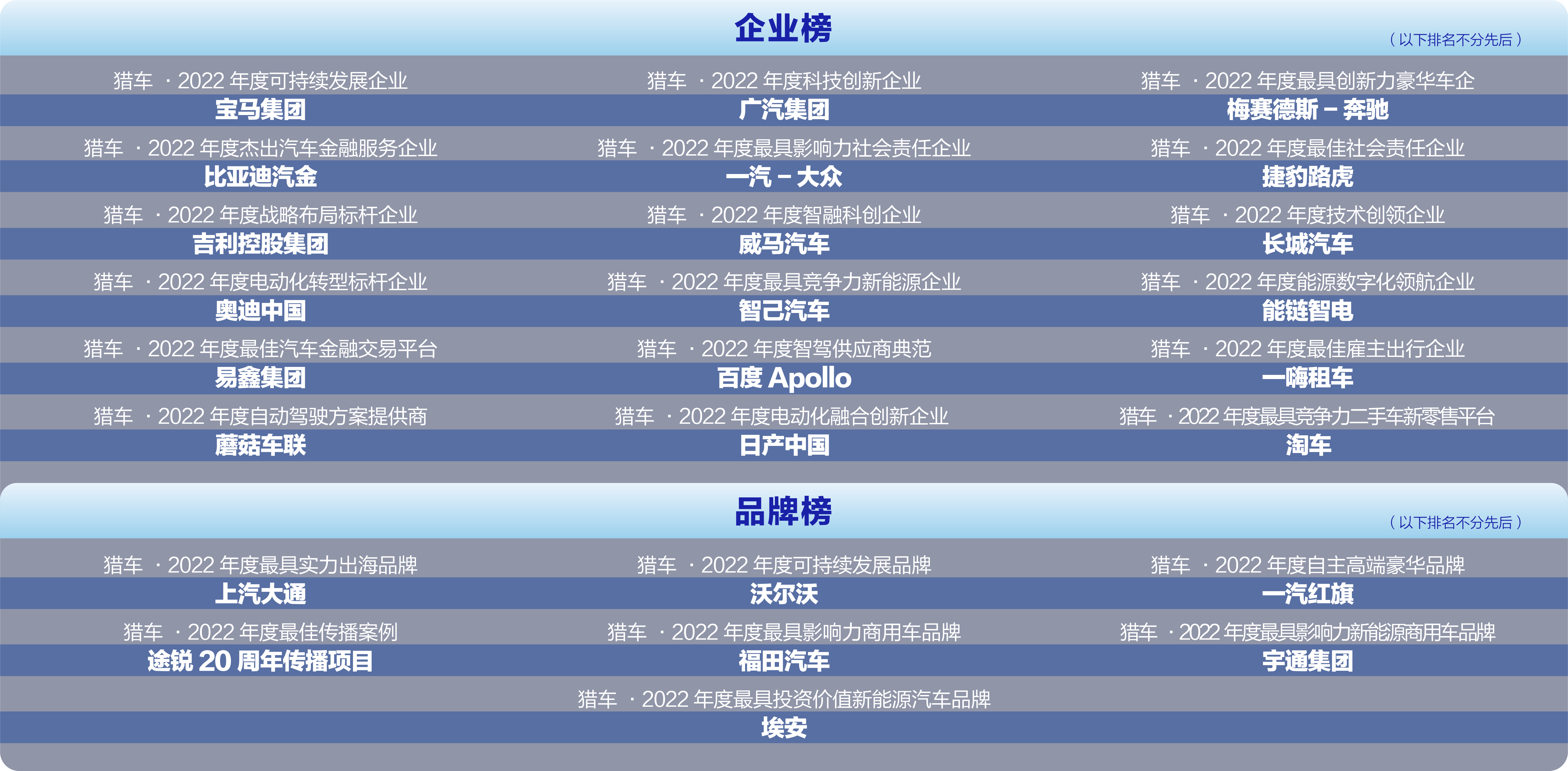 “中國獵車榜” 由每日經(jīng)濟(jì)新聞?dòng)?008年正式發(fā)起,旨在作時(shí)代變局的見證者,汽車產(chǎn)業(yè)革新的推動(dòng)力。 十余年來,中國獵車榜始終堅(jiān)持“公開、公平、公正”的原則募集獎(jiǎng)項(xiàng)申請(qǐng),組織行業(yè)專家和知名媒體人進(jìn)行集中評(píng)審,全面覆蓋整車企業(yè)及產(chǎn)業(yè)鏈上下游企業(yè),獲得了行業(yè)同仁的認(rèn)可和大力支持,如今,中國獵車榜已成為行業(yè)最具權(quán)威和影響力的獎(jiǎng)項(xiàng)評(píng)選之一。 基于此, 《每日經(jīng)濟(jì)新聞》 將于2022年11月23日在線上舉辦以 “向新而生 創(chuàng)享末來”為主題的第十四屆中國獵車榜,與行業(yè)專家、高校學(xué)者、企業(yè)高管相聚云端,共話未來!