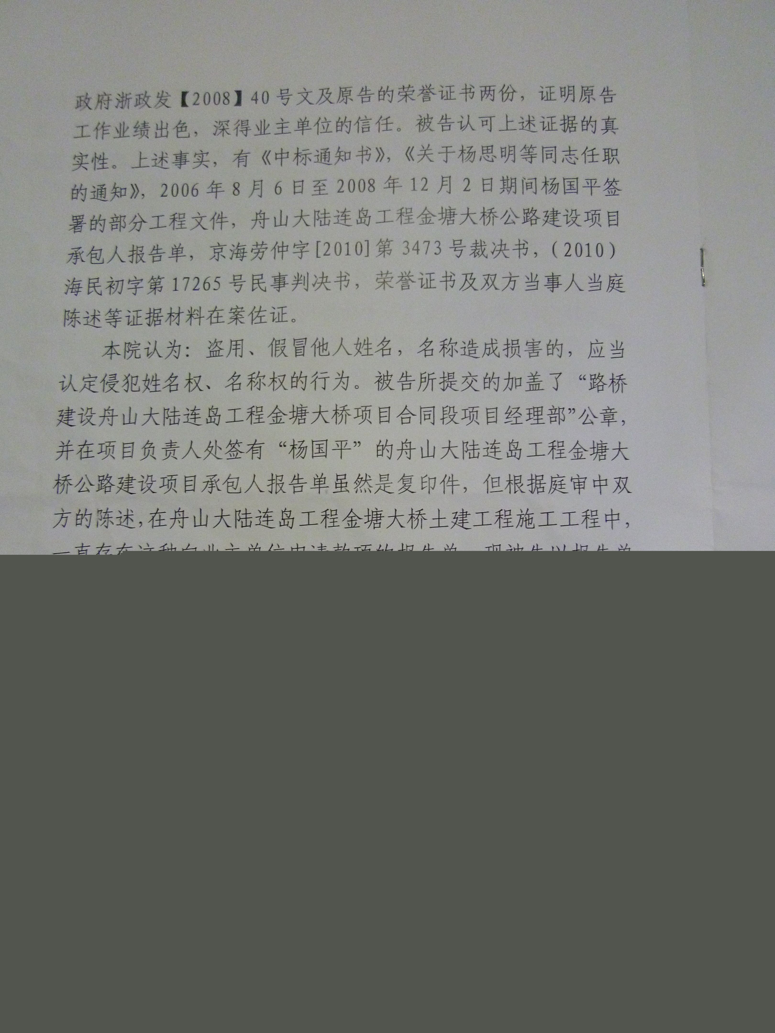 北京市海淀區(qū)人民法院民事裁決書(shū)((2010)海民初字第17265號(hào))中指出,“金塘大橋第II合同段工程已超過(guò)路橋華東公司所能承建的工程標(biāo)的額范圍。”“但該工程存在分包情形,該工程實(shí)際施工方為路橋華東。”