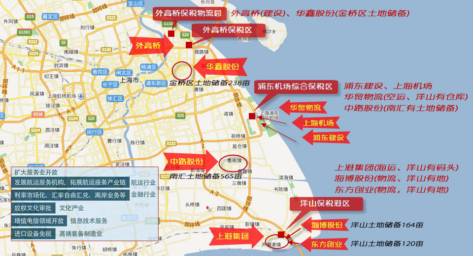 位于上海東部的洋山保稅港區(qū)、外高橋保稅區(qū)和浦東機場綜合保稅區(qū),面積28平方公里,相當于上海市面積的1/226。